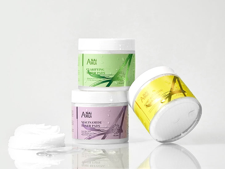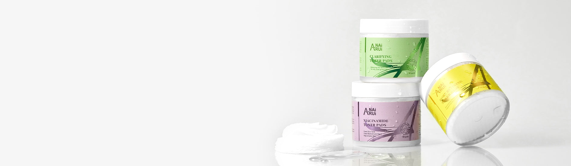 ANAIRUI Toner Pads gently exfoliate, hydrate, and brighten skin in one step. Infused with soothing botanicals, they refine texture, reduce dullness, and prepare skin for better absorption of serums and creams.