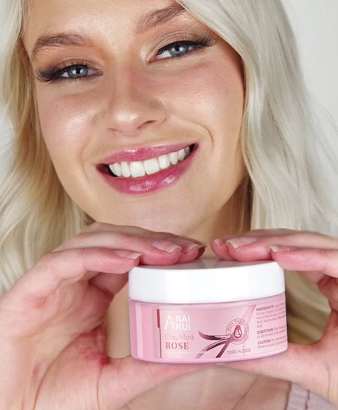 ANAiRUi Rosa Clay Pink Mask is a hydrating and detoxifying facial clay mask made with natural ingredients like rose flower extract, papaya fruit, kaolin clay, hyaluronic acid, collagen, and niacinamide. This vegan, cruelty-free mask is designed for all skin types (except highly sensitive) and offers a spa-like skincare experience at home.