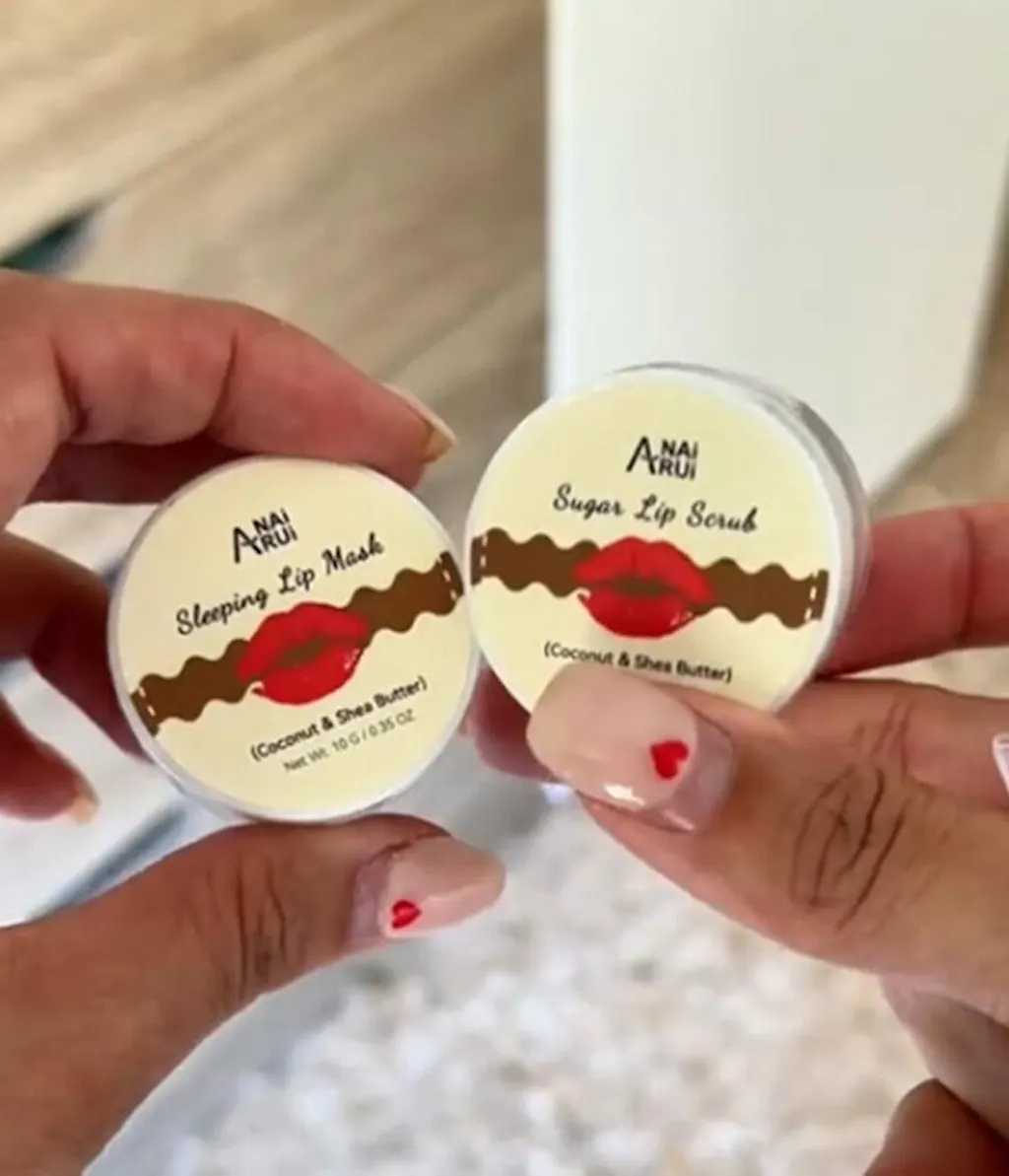 The ANAIRUI Coconut Lip Care Set is a 2-step lip therapy kit that includes a coconut lip scrub and an overnight lip sleeping mask. Infused with coconut oil, shea butter, and vitamin E, it hydrates, nourishes, and softens lips while you sleep, leaving them smooth, plump, and naturally glowing.