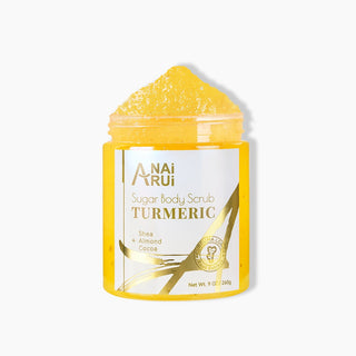 Turmeric Sugar Scrub features Real Sugar, Turmeric, Shea Butter, and a variety of botanical body oils, to cleanse, exfoliate, nourish, and hydrates your skin, rejuvenate & refresh dull, dry skin.