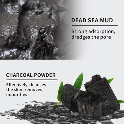 ā Dead Sea Mud & Activated Charcoal absorb excess oil, exfoliate dead skin cells, and visibly unclog pores.